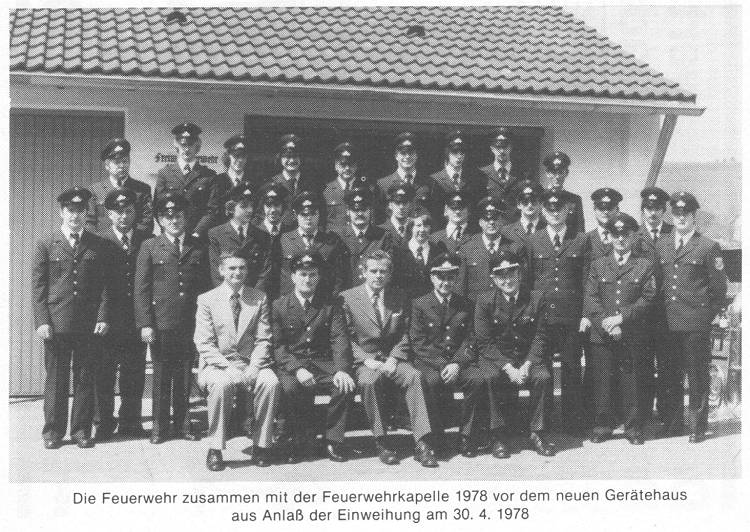 Im Jahre 1930 wurde ein Feuerwehrgerätehaus erbaut und ebenfalls im gleichen Jahre eine Feuerwehrkapelle gegründet. Es zeugt von großem Gemeinschaftsgeist der Feuerwehrmitglieder, dass es gerade in dieser wirtschaftlich schlechten Zeit möglich war, eine Einrichtung zu schaffen, die nicht nur Idealismus, sondern auch einen großen Kapitalaufwand erfordert. Die Feuerwehrkapelle hat sich in den nun 55 Jahren ihres Bestehens zu einem weit über die Grenzen unseres Raumes bekannten Klangkörper entwickelt.