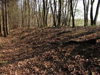 Der im Volksmund "Tempelberg" genannte Distrikt geht wohl ohne Zweifel ebenfalls auf die Römerzeit zurück. Um 1920 war ein mächtiger Steinhaufen letzter Zeuge des ehemals hier bestandenen Bauwerks. Säulenreste ließen die Vermutung zu, das hier ein Tempel gestanden habe. Das muss nicht sein. Es ist bekannt, dass die Römer auch ihre aufwendigen Landsitze reich mit Säulen ausgestattet hatten. Kurz nach 1900 wurde eine aus behauenen Sandsteinen bestehende Treppe mit vier Stufen freigelegt, indes wieder zugeschüttet.