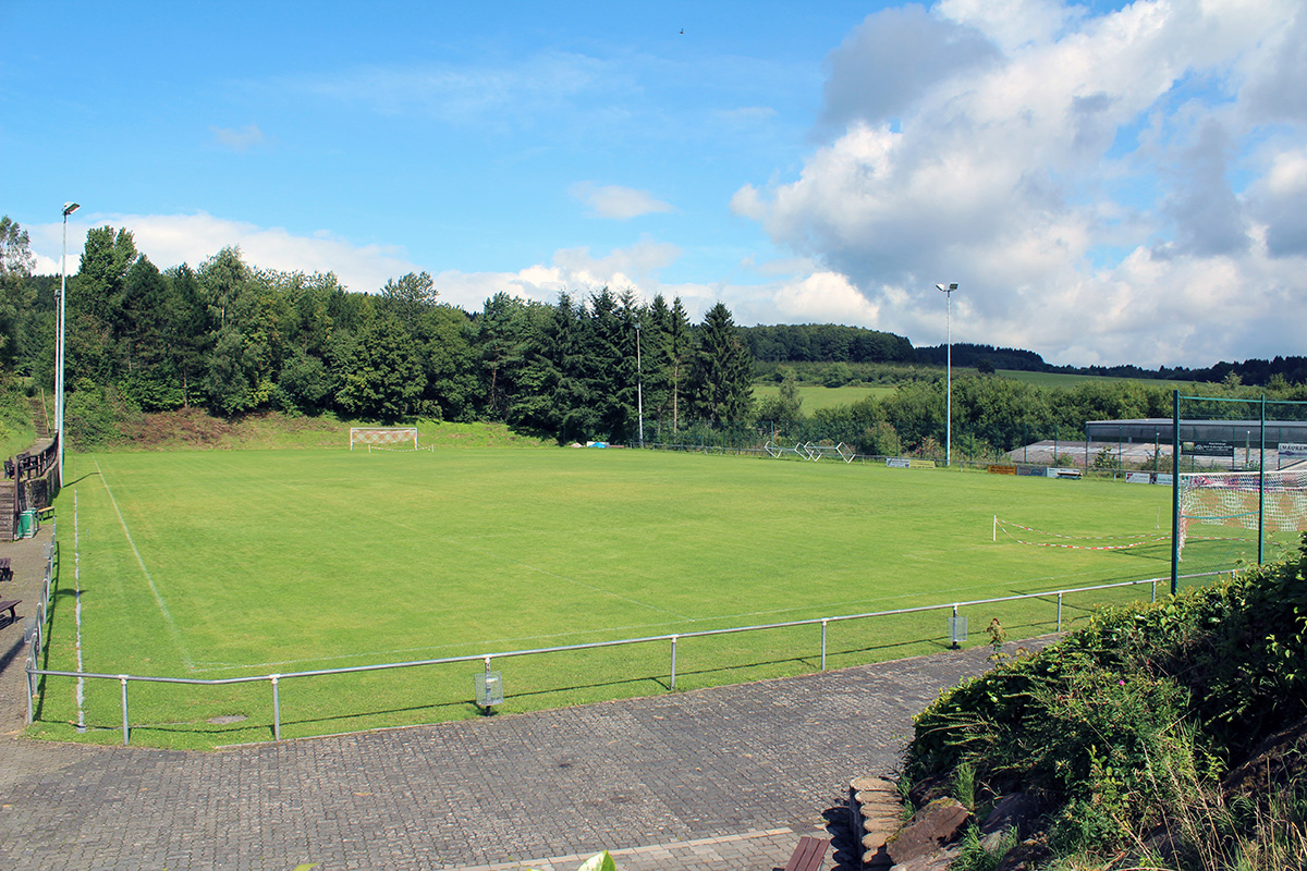 Rasenplatz mit Vereinshaus. Auch bekannt als "Waldstation".